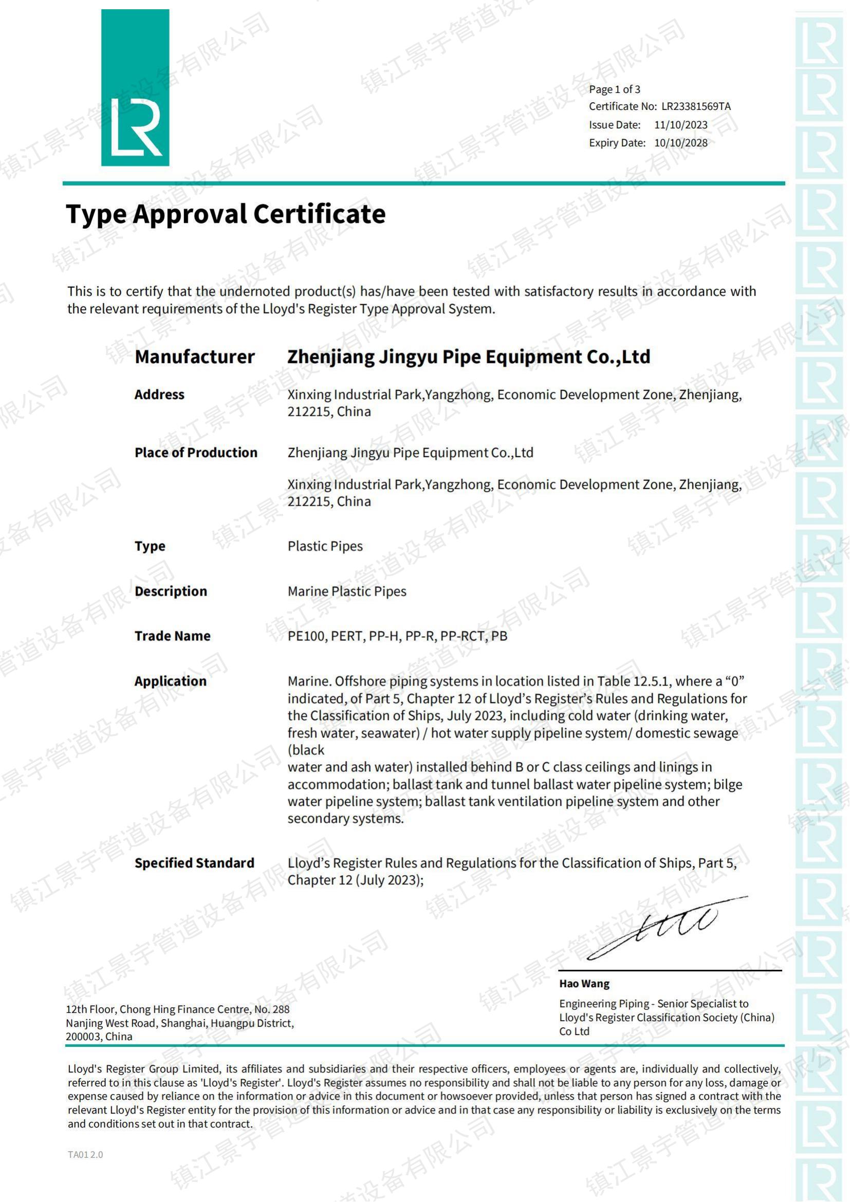 英国船级社证书(LR)